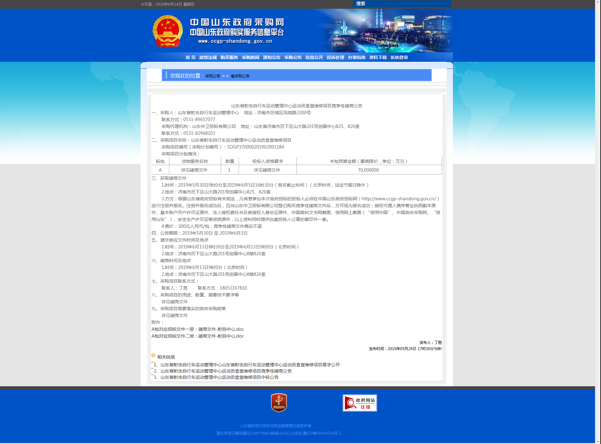 山东省射击自行车运动管理中心运动员食堂维修项目磋商公告