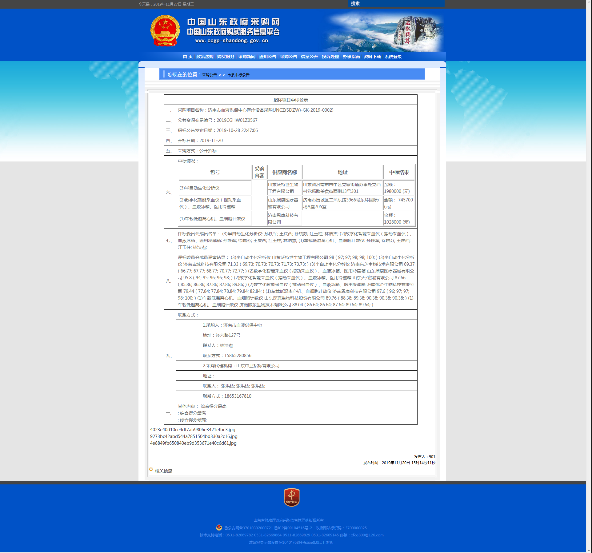 济南市血液供保中心医疗设备采购项目中标公告