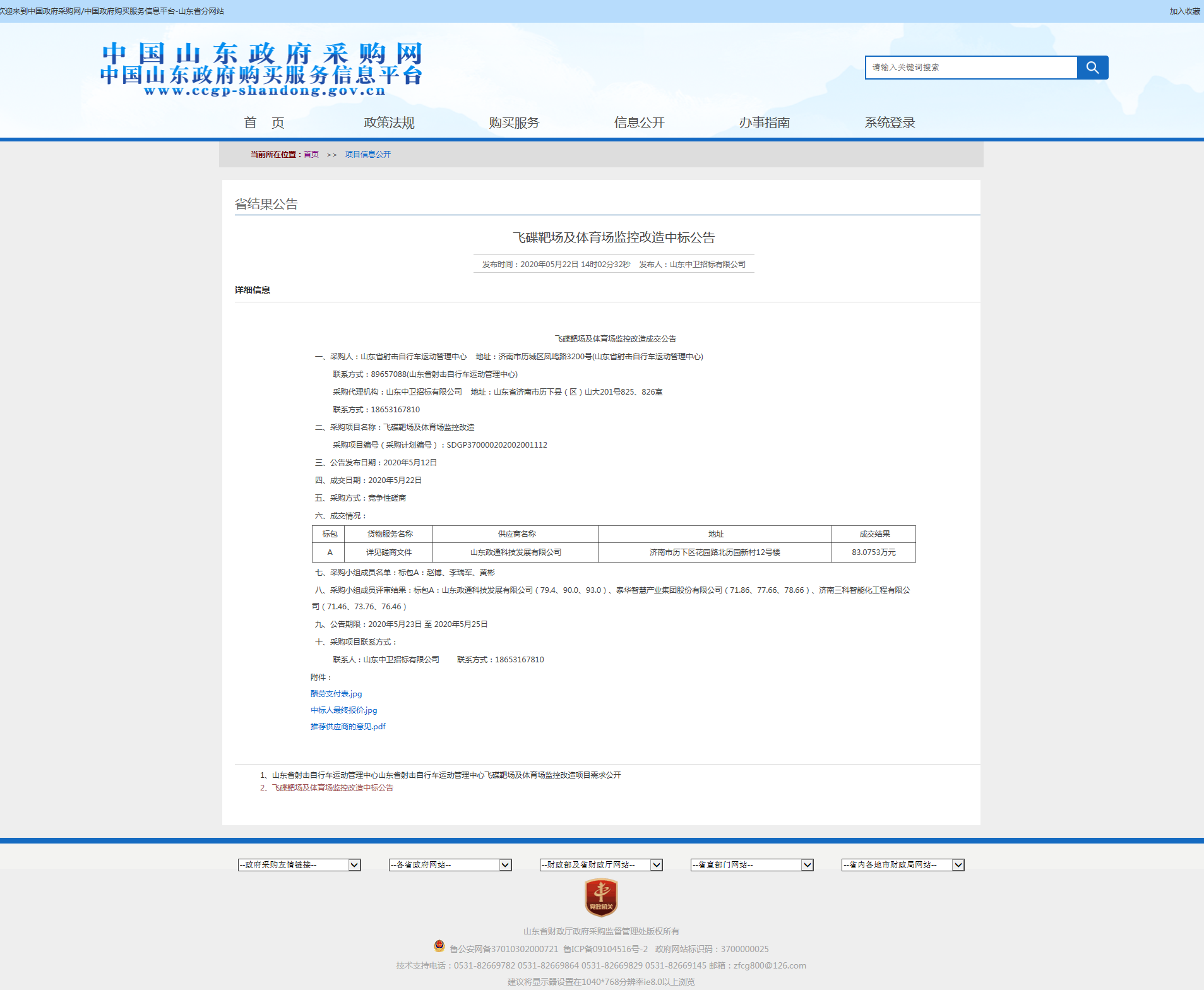 山东省射击自行车运动管理中心飞碟靶场及体育场监控改造项目成交公告